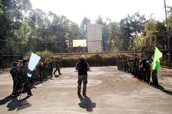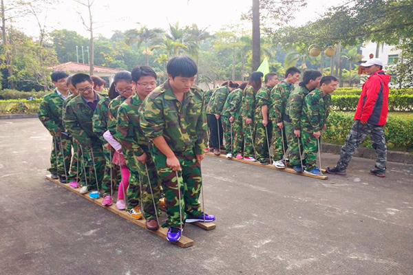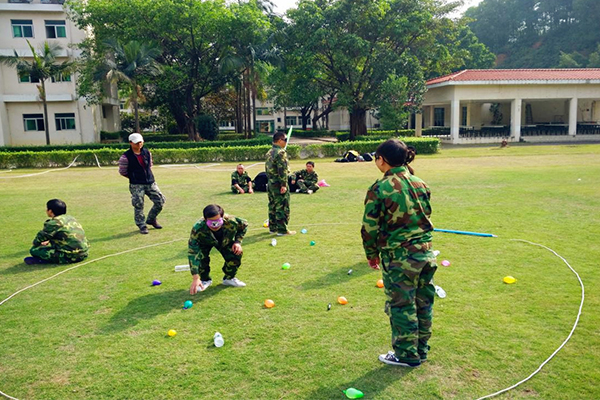 這個(gè)項(xiàng)目是模擬戰(zhàn)場,三人一組,分別扮演:司令(不能說話、面朝戰(zhàn)場)、參謀長(背對戰(zhàn)場)、士兵(蒙上眼罩,不能說話)。
