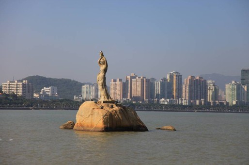 在聆聽導游關于漁女的傳說中,來到了香爐灣畔,親臨觀賞珠海漁女像----她領戴項珠,身掮魚網(wǎng),褲腳輕挽,雙手高高擎舉著一顆晶瑩璀璨的珍珠,帶著喜悅而又含羞的神情,向世界昭示著光明,親眼目睹使人覺得比傳說更加優(yōu)美,漁女像與情侶路已經(jīng)成為珠海的象征!